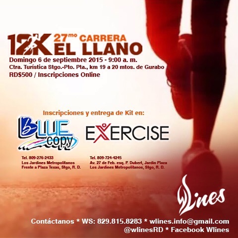 Carrera del Llano August 31, 2015 / Dennis Ripoll Los invitamos el próximo domingo al evento a desarrollarse en la Carretera Turística Stgo./POP. 12k que prometen ser emocionantes como pocos. Share this: Share on X (Opens in new window) X Share on Facebook (Opens in new window) Facebook Like Loading... Related